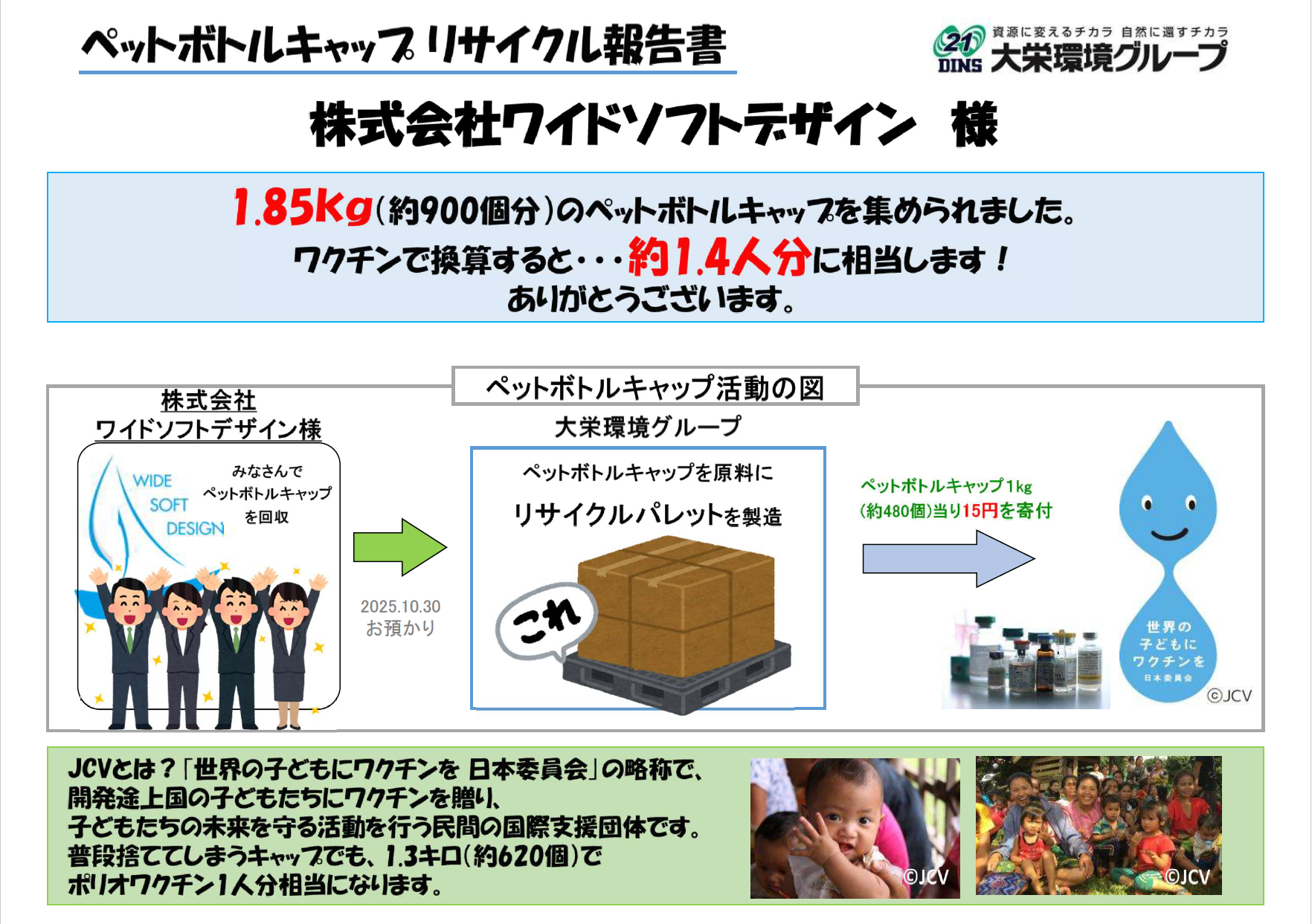 株式会社 ワイドソフトデザインは、ペットボトルキャップリサイクル活動に参加しています。