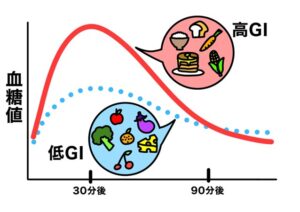 GI値(グリセミック・インデックス)は、食べ物を食べたときに血糖値がどれくらい早く上がるかを示す数値です。